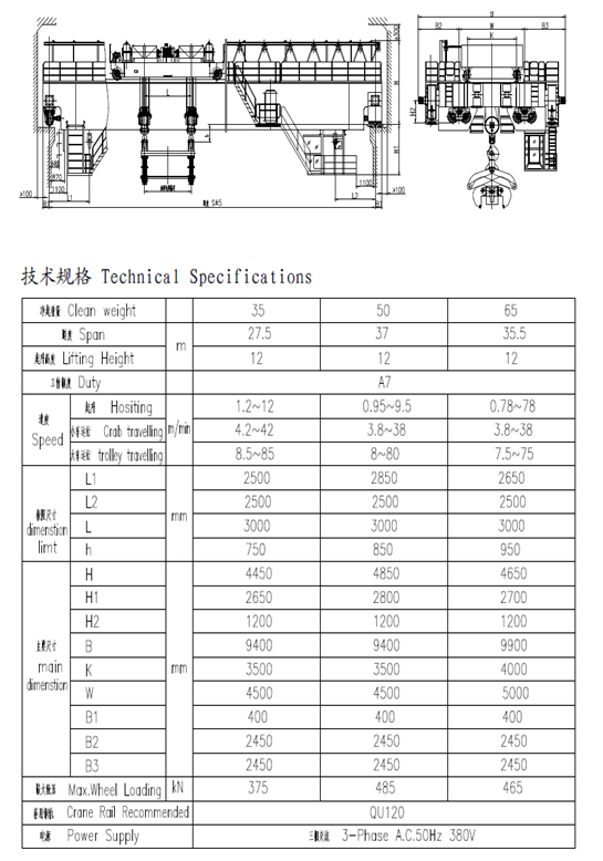 2、 本起重機用于鋼廠、船廠、港口、堆場和倉儲等室內或露天的固定跨間,裝卸及搬運鋼板板坯、型材等物料。