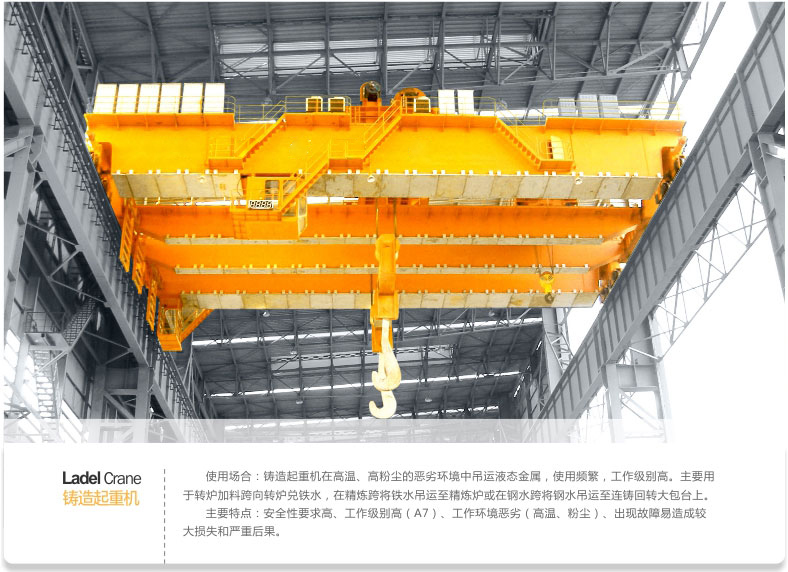 3、 我公司設計制造的鑄造起重機具有技術先進、結構新穎、安全可靠、經濟耐用、維護簡單等特點。